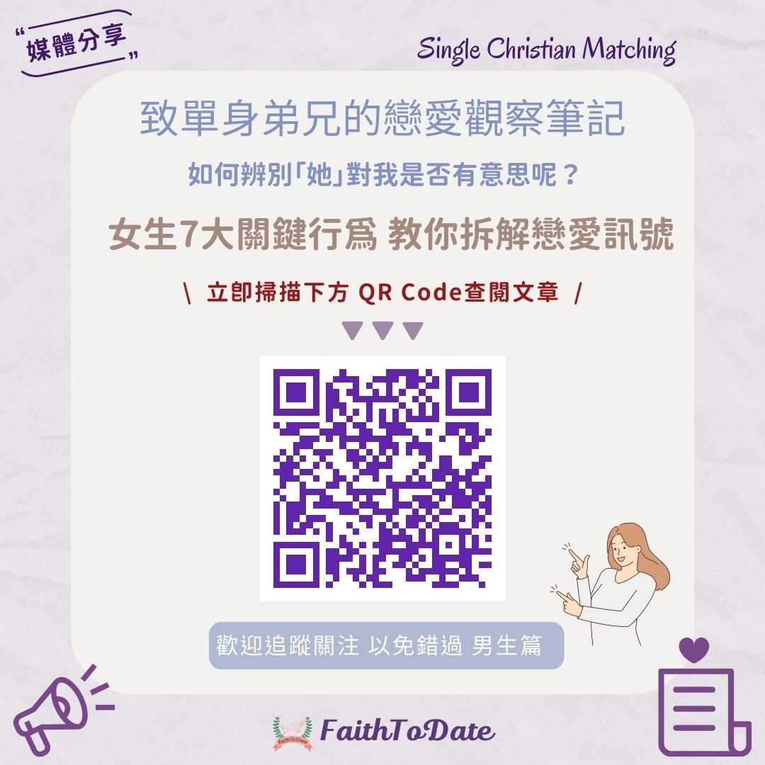 (*FaithToDate 每月會於基督教論壇報分享情感類型文章,如有興趣可關注相關更新)