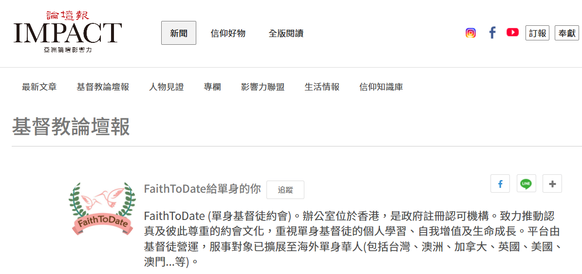FaithToDate(單身基督徒約會)擁有11年配對經驗,重視認真和尊重的約會文化,支持單身者的個人成長及學習。中心位於香港。