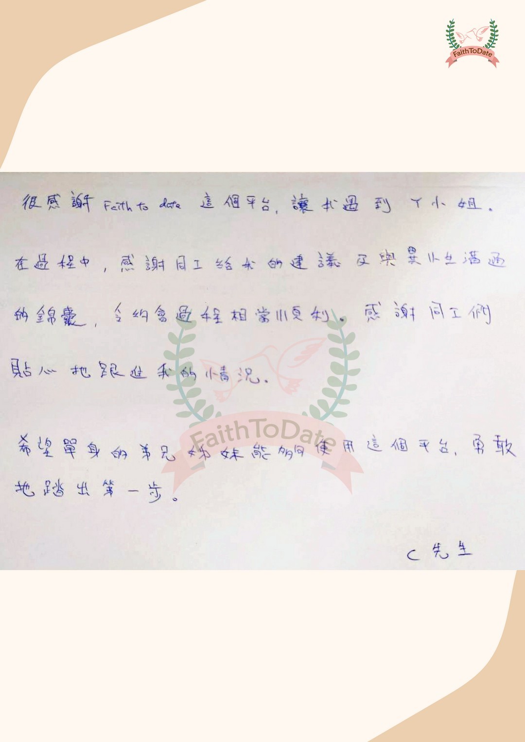 " It was our first time to try Christian matchmaking and we had many first-time while participating in FaithtoDate... "