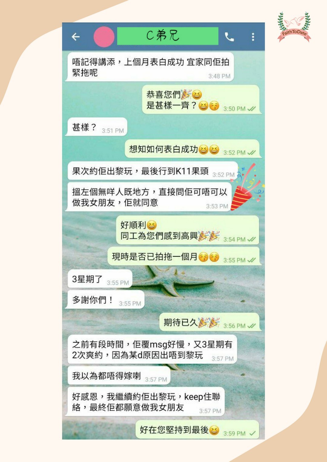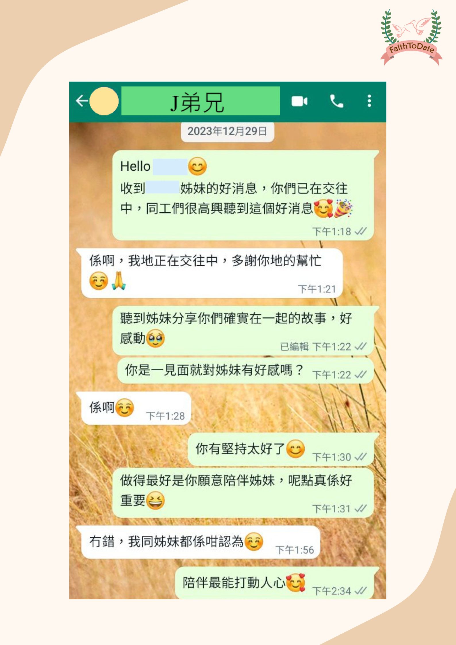“ You previously introduced Sister W to me, and I am currently dating her. Thank you all, and thanks God. ”