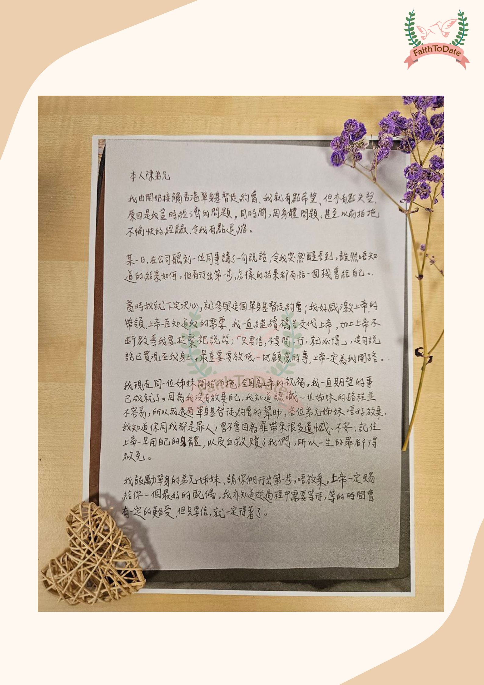 Letter from Sister L to perfect singles (Succeed in Dating)