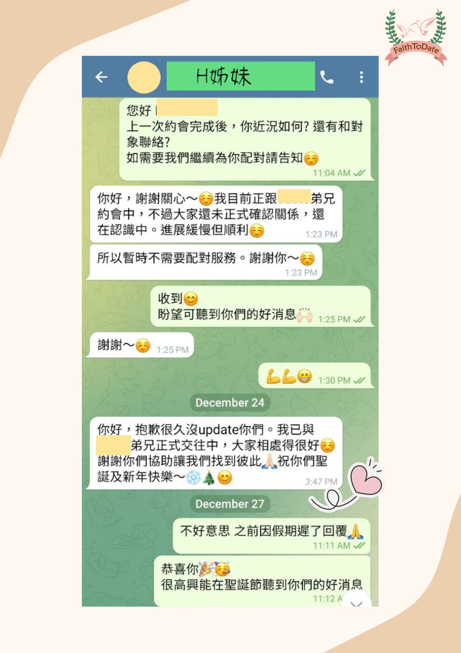 “I have been dating your company member, Sister R, for 3 months now… I want to thank your company and express gratitude for the opportunity that God has given me...”