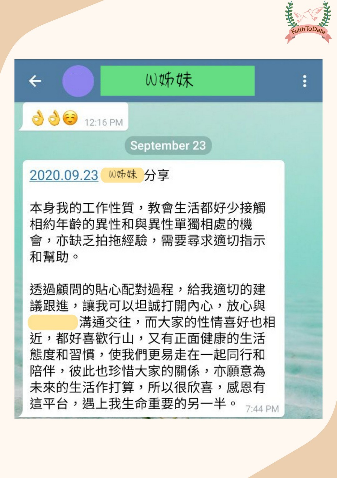 謝謝W姊妹邀請,whatsapp節錄如下: