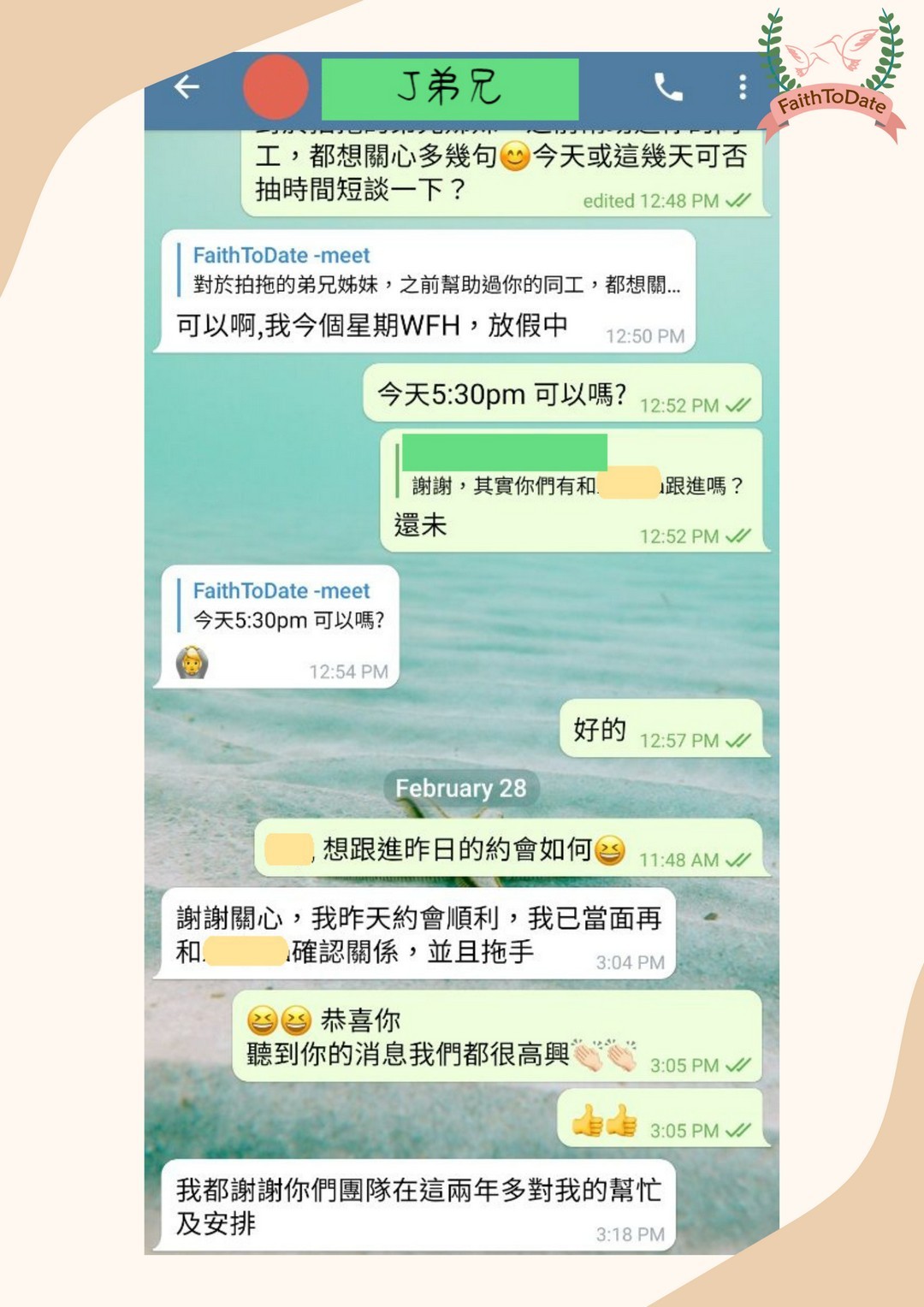 謝謝你地呢段時間的幫忙,幫我做配對,安排約會,如今我已經脫單,和A在一起,拍拖成為情侶!