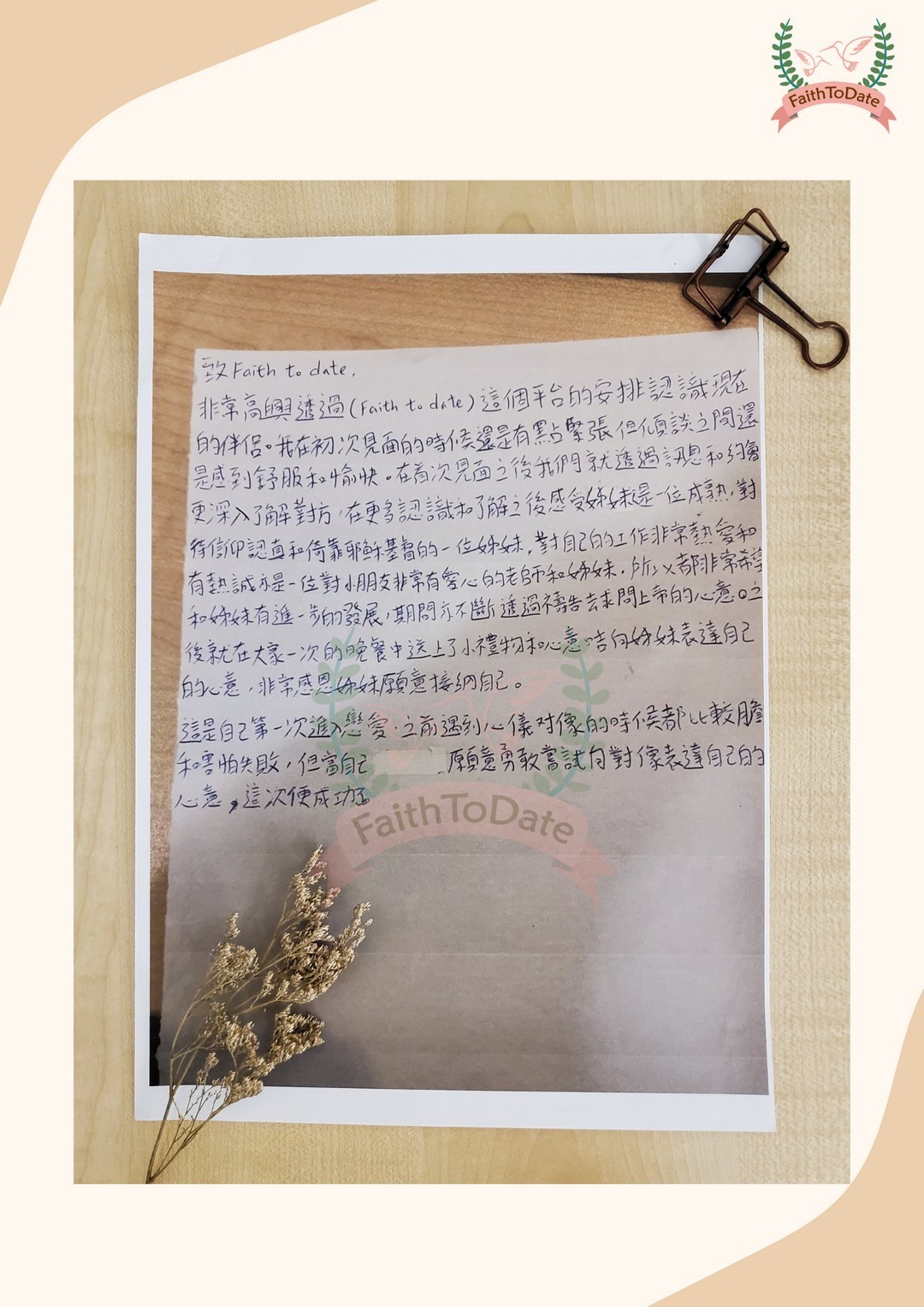 非常高興透過(Faith to date)這個平台的安排認識現在的伴侶。