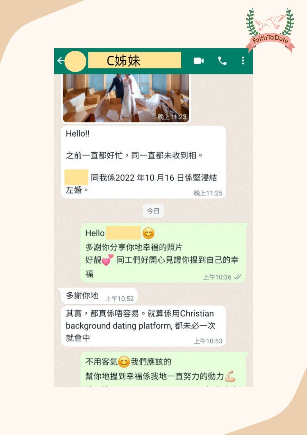 Faith Faith : 恭喜C姊妹,盼望您們有幸福美好家庭,主恩滿溢